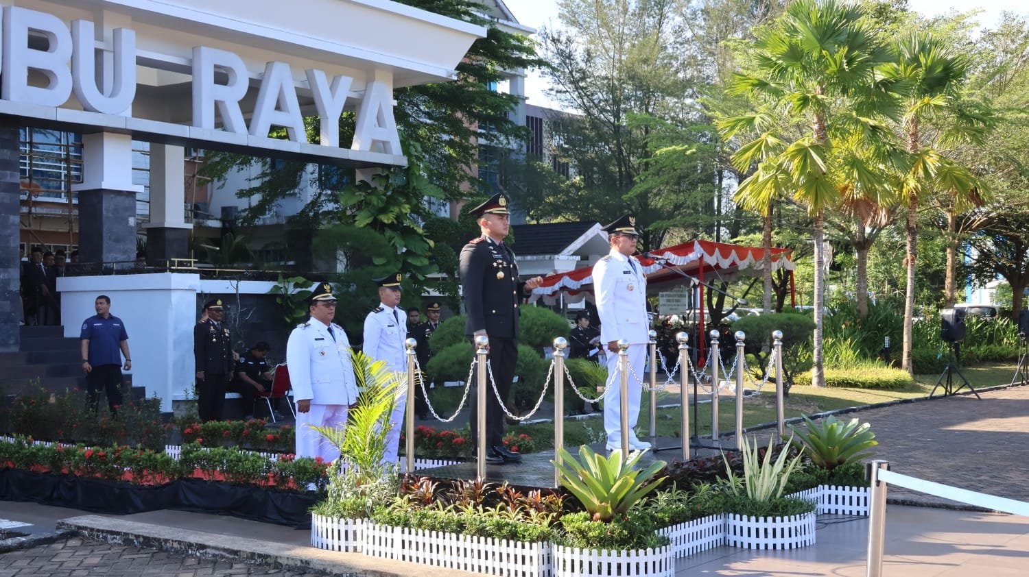 Upacara Hari Bhayangkara dipimpin langsung oleh Bupati Kubu Raya H. Sujiwo, sebagai inspektur upacara, didampingi Kapolres Kubu Raya AKBP Kadek Ary Mahardika.