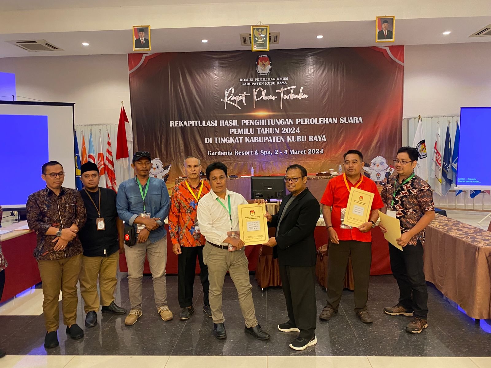 Rapat Pleno Terbuka Rekapitulasi hasil perhitungan perolehan suara Pemilu Tahun 2024 tingkat Kabupaten Kubu Raya di Hotel Gardenia Resort Jalan Arteri Supadio Kecamatan Sungai Raya Kabupaten Kubu Raya dinyatakan selesai pada Senin (4/3/24) Pukul 21.40 Wib malam.