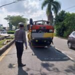 Hindari Sepeda Motor, Truk Tangki di Kubu Raya Terguling dan Alami Lepas Gardan