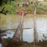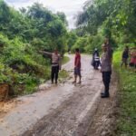Jembatan Roboh di Desa Nanga Siyai, Polsek Menukung dan Warga Gotong Royong Buka Jalan Alternatif