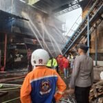 KUBU RAYA – Kobaran api melalap sebagian bangunan PT. Alas Kusuma yang