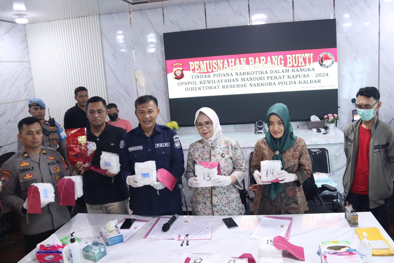 Pemusnahan tersebut dipimpin oleh Kabagops Ditresnarkoba Polda Kalbar AKBP Sri Sulasmini, S.H., M.H., didampingi Kasubbid Penmas Bidhumas Polda Kalbar AKBP Prinanto, dan Jaksa Utama Pratama Linda Irma Sari, S.H., M.H.
