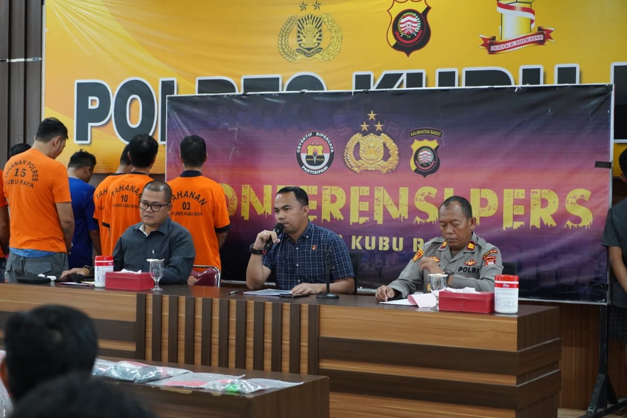 pontianakmerekam.net/, KUBU RAYA – Polres Kubu Raya memaparkan sejumlah pengungkapan kasus menonjol dalam konferensi pers yang digelar di Aula Mapolres Kubu Raya pada Selasa (26/11). Dalam kesempatan itu, jajaran kepolisian menjelaskan hasil ungkap dua kasus Tindak Pidana Perdagangan Orang (TPPO), dua kasus perjudian, serta pelanggaran hukum terkait peredaran rokok ilegal dan narkotika.