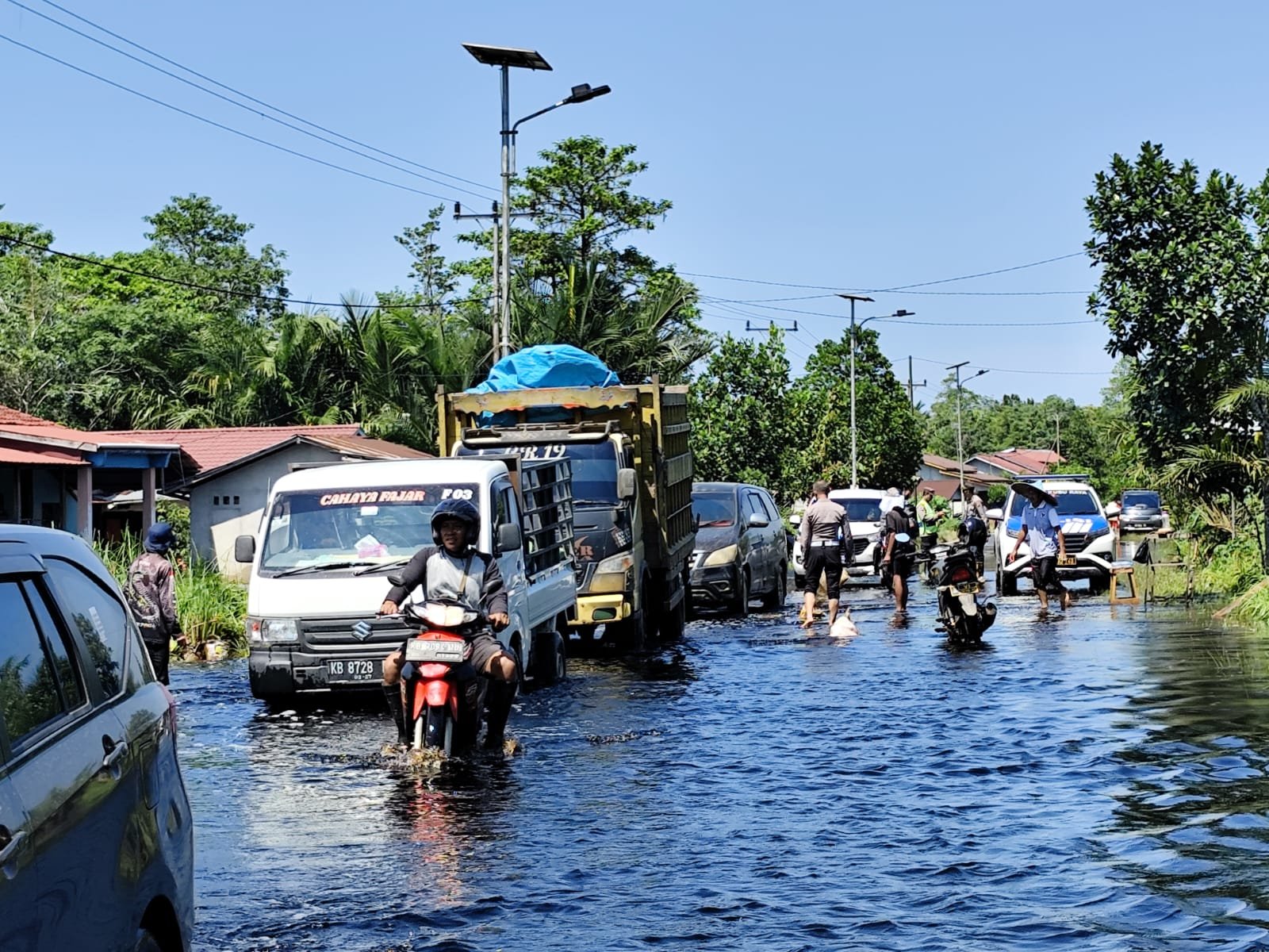 Kasat Lantas Polres Kubu Raya, AKP Supriyanto, melalui Kasubsi Penmas, AIPTU Ade, menjelaskan bahwa genangan air di wilayah tersebut memanjang sekitar satu hingga satu setengah meter dengan ketinggian mencapai paha orang dewasa dari permukaan jalan.