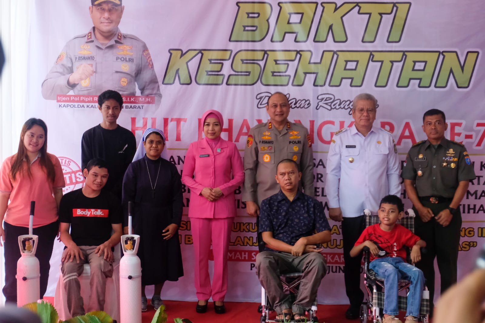 Kegiatan Bakti kesehatan Polri Polda Kalbar dipusatkan di Rumah Sakit Bhayangkara Anton Sujarwo Pontianak tersebut dilaksanakan dengan memberikan pelayanan kesehatan masyarakat diantaranya meliputi pelayanan Kesehatan disabilitas, pelayanan KB, pelayanan stunting, donor darah, operasi katarak,