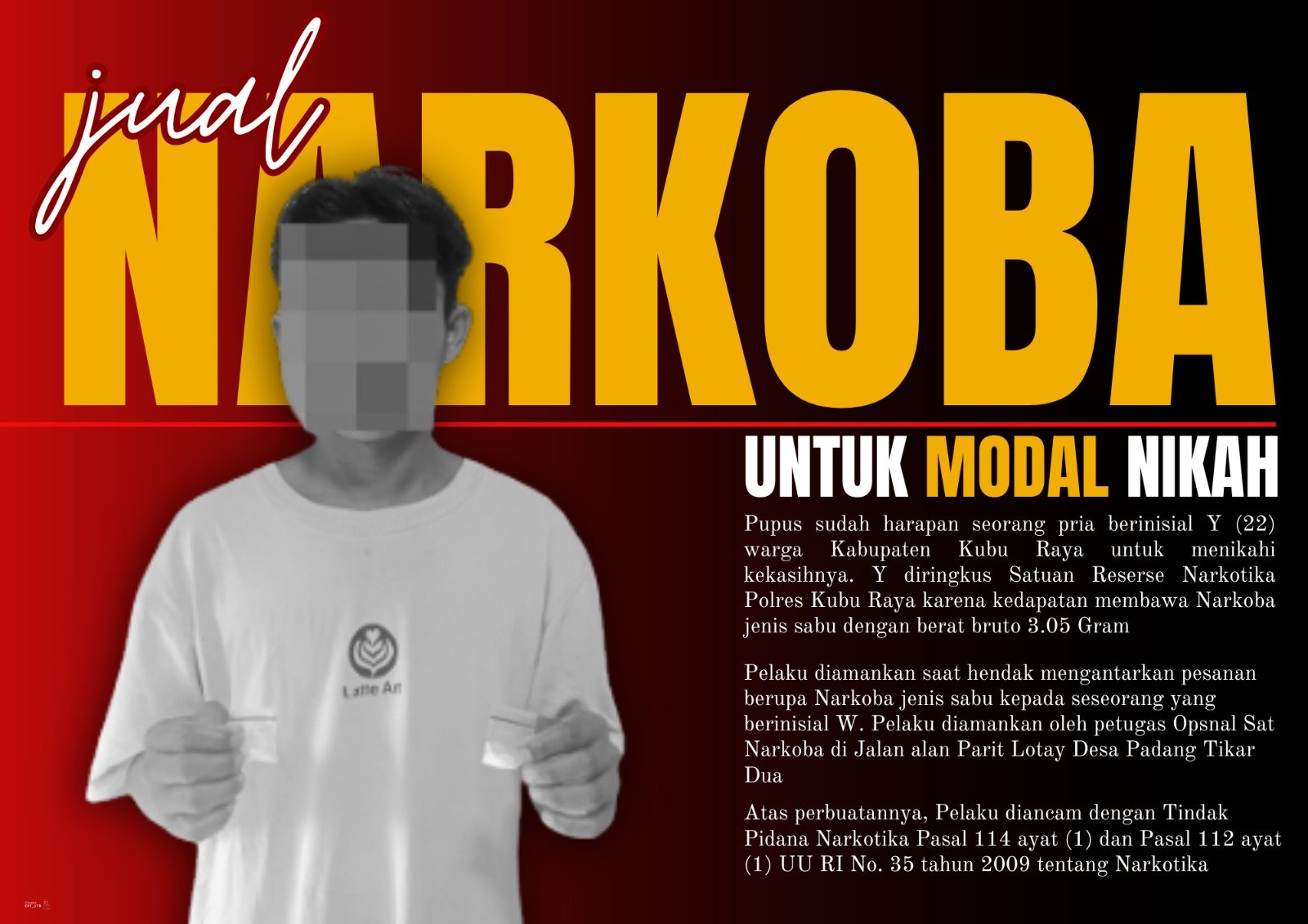 KUBU RAYA – Pupus sudah harapan seorang pria berinisial Y (22) warga Kabupaten Kubu Raya untuk menikahi kekasihnya. Y diringkus Satuan Reserse Narkotika Polres Kubu Raya karena kedapatan membawa Narkoba jenis sabu dengan berat bruto 3.05 Gram.