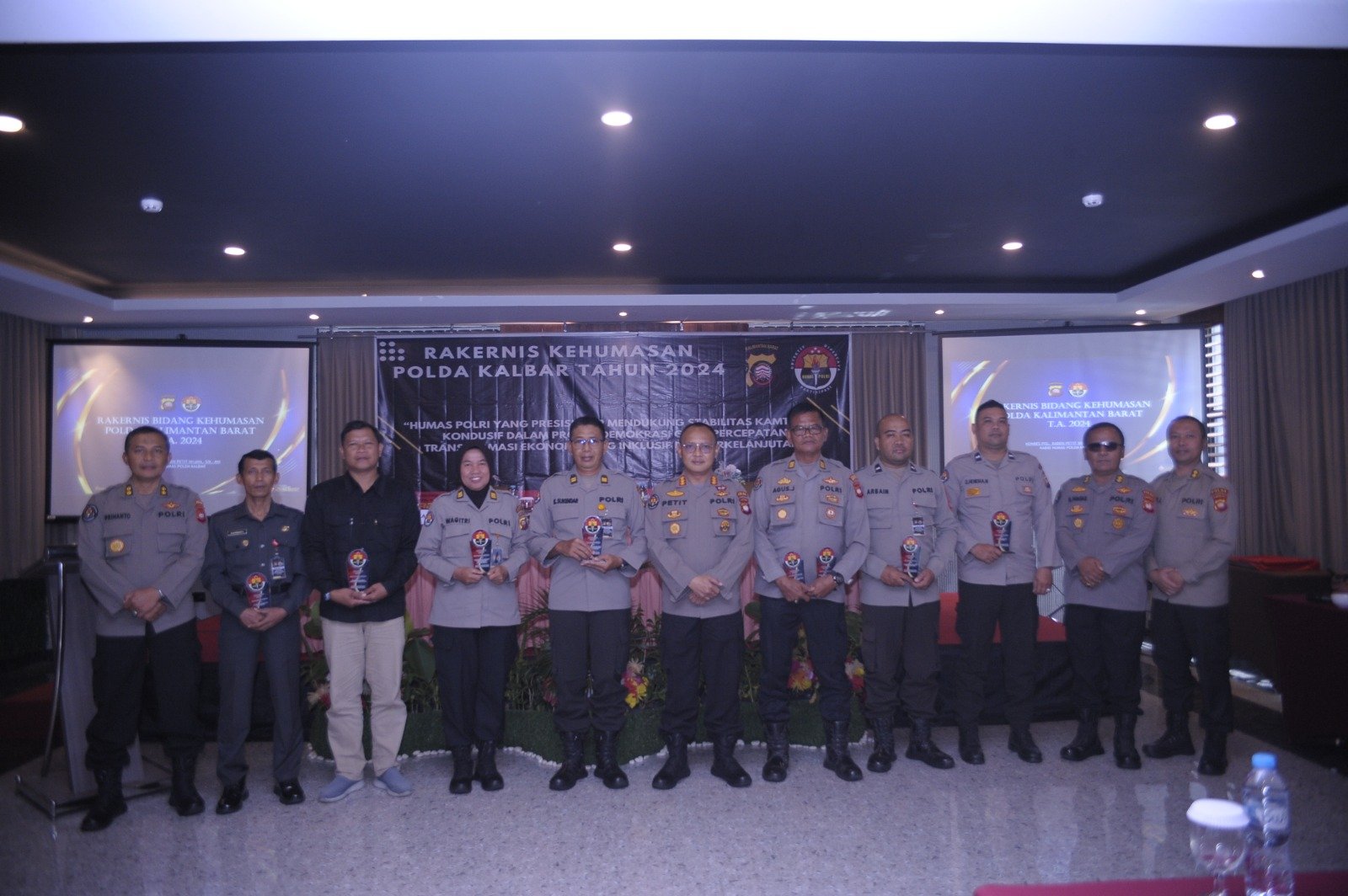 pontianakmerekam.net/, Dalam acara Rakernis Bidang Kehumasan Polda Kalbar Tahun 2024, Kapolda Kalbar, Irjen Pol Pipit Rismanto S.IK, MH. melalui Kabidhumas Polda Kalbar, Kombespol Raden Petit Wijaya, S.I.K., M.M memberikan apresiasi kepada Satker Polda dan Polres jajaran yang telah menunjukkan kinerja yang baik dalam bidang kehumasan, Kegiatan tersebut diselenggarakan dihotel Alimoer Kuburaya, Rabu (15/05)
