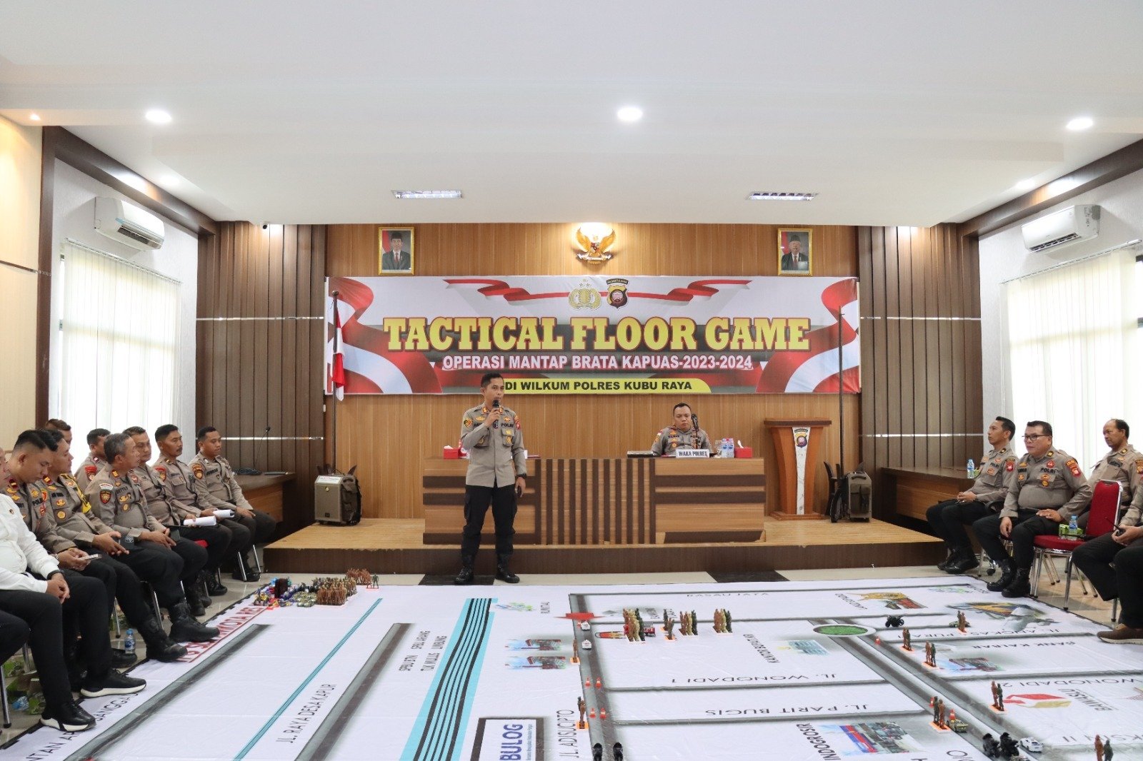 “ Tactical Floor Game ini digunakan sebagai wahana koordinasi dalam memperjelas tugas fungsi sekaligus peran yang akan dikerjakan pada saat penugasan personil sesuai ploting dilapangan, hal ini juga sekaligus melakukan pengecekan terhadap kesiapannya, mulai dari perlengkapan dan teknologi yang mendukung dalam dinamika operasi terpadu Mantap Brata Kapuas 2023-2024,”jelas Kapolres Kubu Raya melalui Kasubsi Penmas Polres Kubu Raya AIPTU Ade.