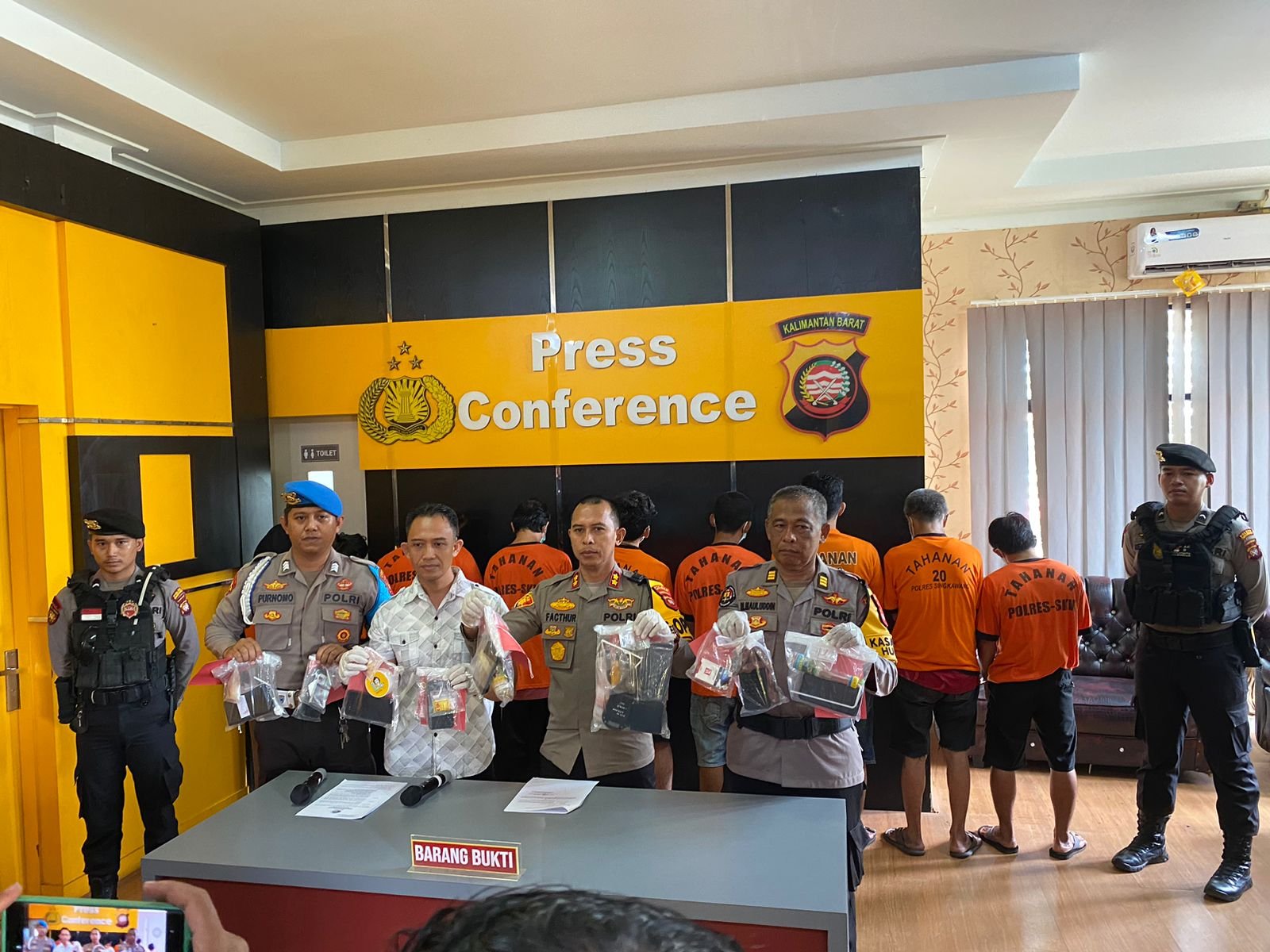 Dalam Kegiatan Press Conference tersebut Kapolres Singkawang didampingi Oleh Kasat Reserse Narkoba Polres Singkawang, Kasihumas Polres Singkawang, Personel Propam Polres Singkawang, Para Penyedik Sat Resnarkoba Polres Singkawang serta dihadiri oleh para Tersangka dan rekan – rekan awak media.