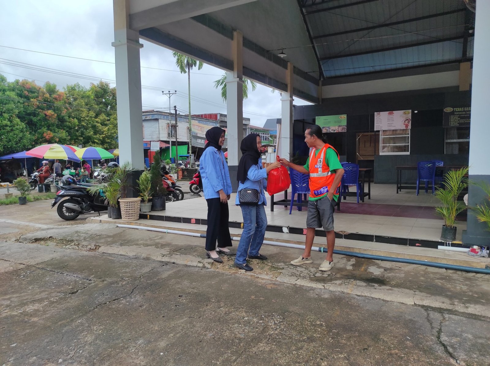 Mahasiswi PSDKU Polnep Sanggau Okta Riskia dan Esty menemui sdr. Bujang yang sehari-hari bekerja sebagai juru parkir di Food Court Seroja Kelurahan Beringin Kecamatan Kapuas Kabupaten Sanggau, dengan tujuan untuk memberikan Bantuan Paket Sembako.