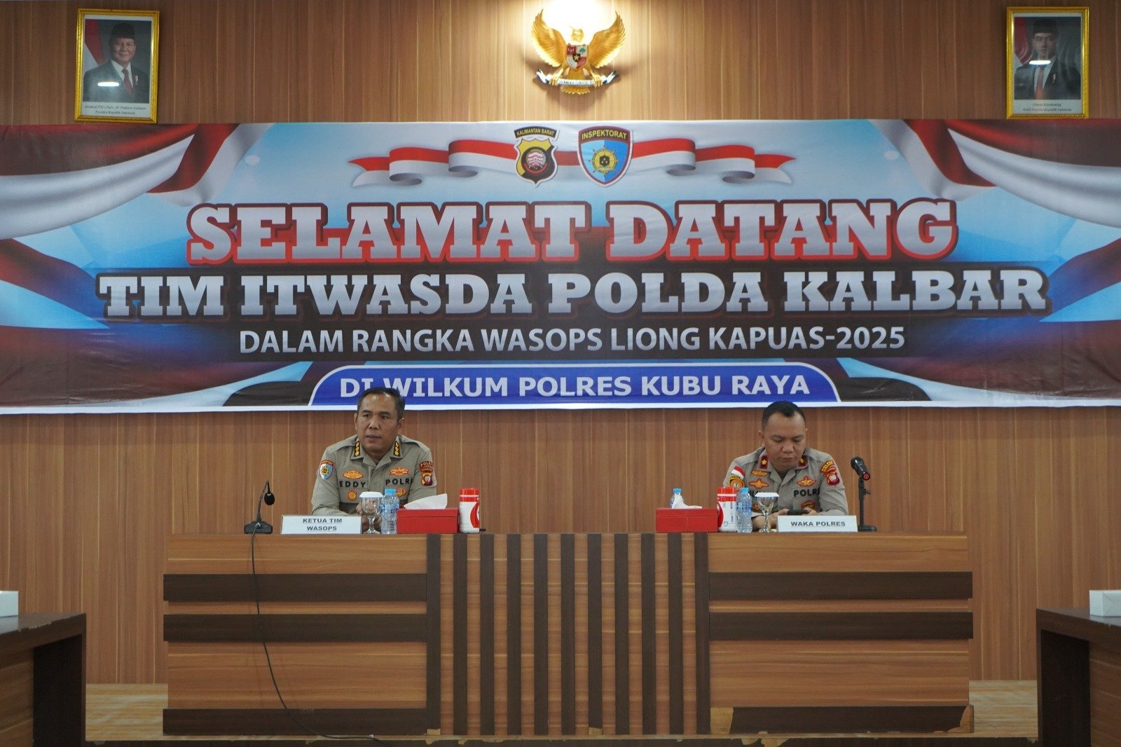 pontianakmerekam.net/, KUBU RAYA – Polres Kubu Raya menerima kunjungan Tim Pengawasan Operasi (Wasops) Kepolisian Kewilayahan “Liong Kapuas 2025” dari Inspektorat Pengawasan Daerah (Itwasda) Polda Kalimantan Barat, Kamis, (6/1). Kegiatan ini bertujuan meninjau administrasi, mekanisme, serta mengevaluasi jalannya operasi yang tengah berlangsung.
