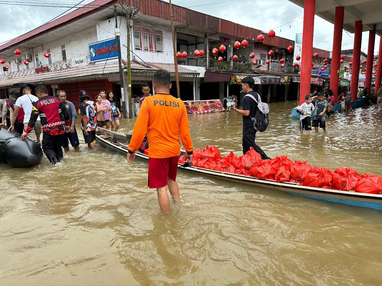 Polres Landak ~ Polda Kalbar ~ Sie Humas ~ Dengan Kebersamaan Kepada Masyarakat Polres Landak melaksanakan pendistribusian bantuan sembako dari Posko Penerimaan Bantuan Bencana Banjir Polres Landak ke wilayah terdampak banjir di Kecamatan Ngabang. Kegiatan ini merupakan bentuk kepedulian Polres Landak terhadap masyarakat yang sedang mengalami musibah, ” Minggu (26/1/2024)