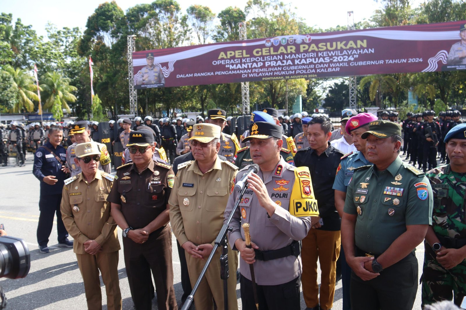 Kabidhumas Polda Kalbar, Kombespol Raden Petit Wijaya kepada awak media menyampaikan tujuan dalam apel tersebut merupakan dimulainya tanda operasi Mantap Praja 2024 berlangsung, Dalam apel tersebut, ribuan personel berbaris rapi dengan perlengkapan lengkap. Mereka berasal dari berbagai satuan, seperti Sabhara, Brimob, Intelkam dan satgas lain yang tergabung. Selain personel, berbagai jenis kendaraan taktis dan peralatan pendukung lainnya juga disiagakan.