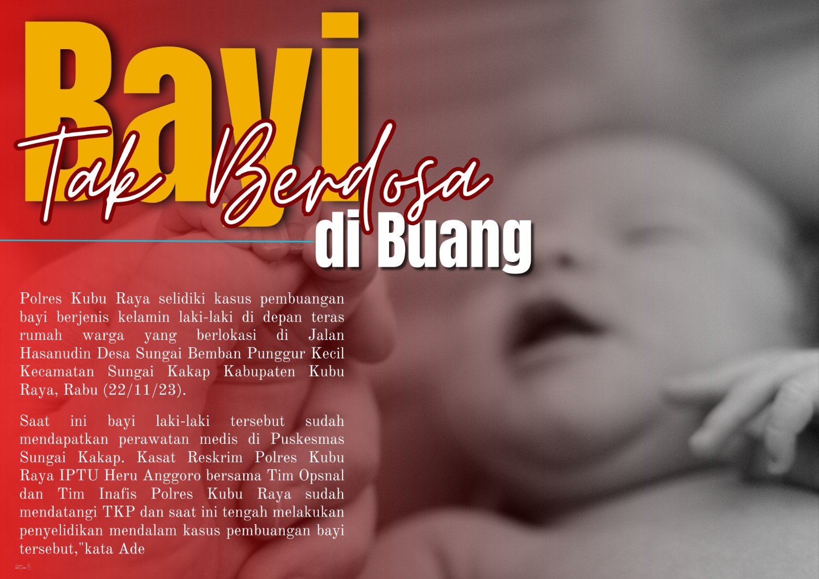 " Saat ini bayi laki-laki tersebut sudah mendapatkan perawatan medis di Puskesmas Sungai Kakap. Kasat Reskrim Polres Kubu Raya IPTU Heru Anggoro bersama Tim Opsnal dan Tim Inafis Polres Kubu Raya sudah mendatangi TKP dan saat ini tengah melakukan penyelidikan mendalam kasus pembuangan bayi tersebut,"kata Ade.