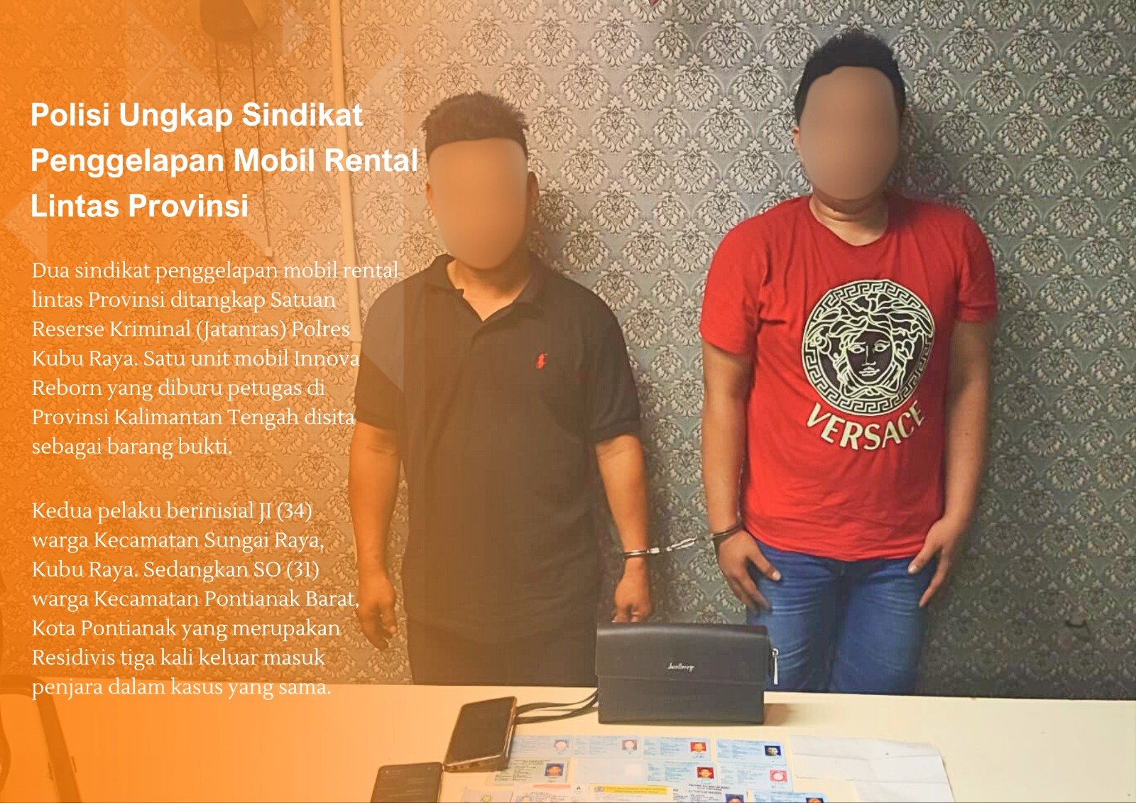 Kedua pelaku berinisial JI (34) warga Kecamatan Sungai Raya, Kubu Raya. Sedangkan SO (31) warga Kecamatan Pontianak Barat, Kota Pontianak yang merupakan Residivis tiga kali keluar masuk penjara dalam kasus yang sama.