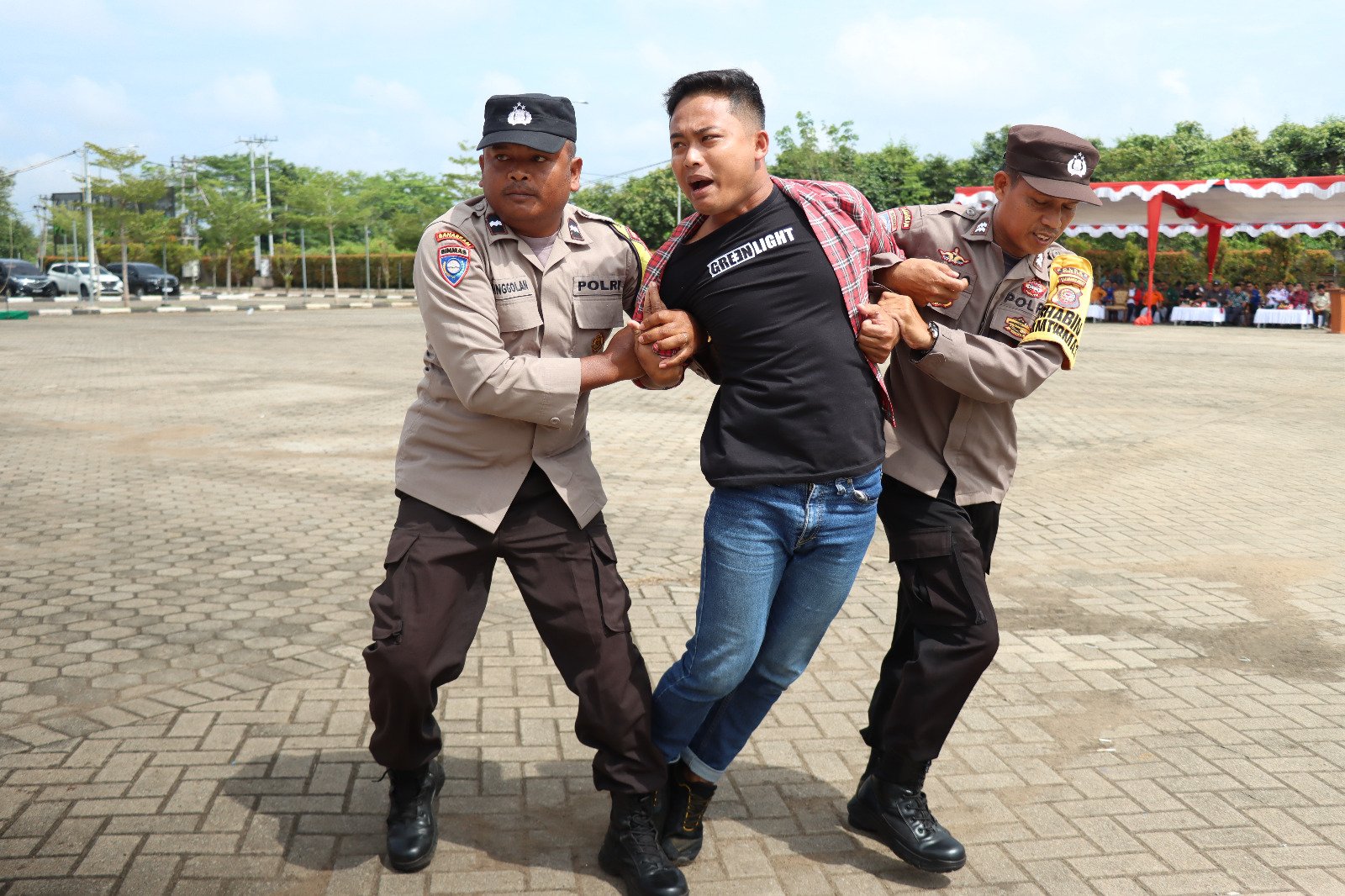 KUBU RAYA – Polres Kubu Raya bersiap mengamankan pelaksanaan Pemilu 2024. Kesiap siapan itu dengan menampilkan simulasi sistem pengamanan kota (Sispamkota) di halaman kompleks pergudangan Borneo Business Icon Jalan Trans Kalimantan Desa Ambawang Kuala Kecamatan Sungai Ambawang Kabupaten Kubu Raya, Kalbar. Kamis (19/10/23) pukul 08.00 WIB.