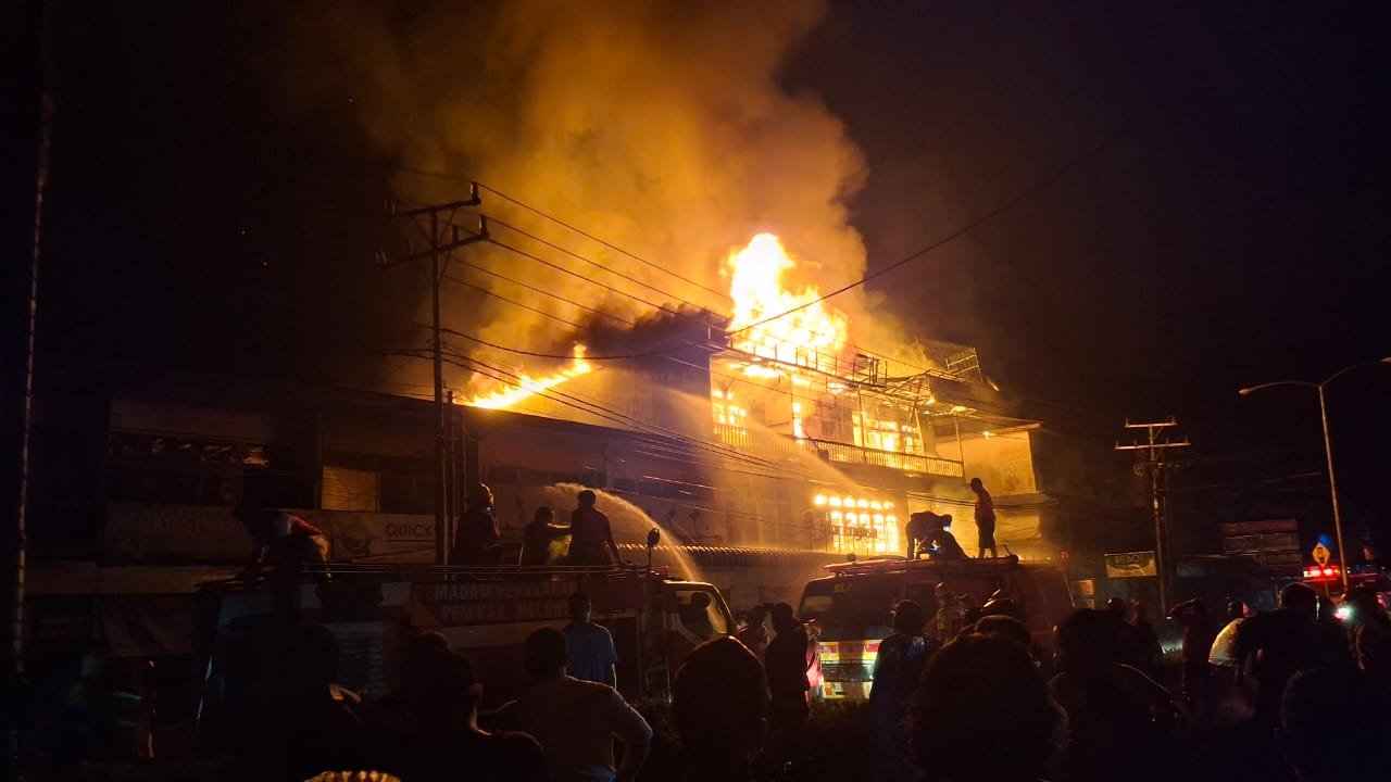 Polres Melawi Polda Kalbar – Kebakaran melanda deretan ruko di Jalan Juang Km 1 Dusun Serundung Permai Desa Tanjung Niaga Kecamatan Nanga Pinoh Kabupaten Melawi. Jumat (29/11). Sebanyak lima belas unit ruko terbakar dalam insiden ini yang berawal dari kepulan asap yang terlihat keluar dari sebuah bengkel motor pada lantai tiga.