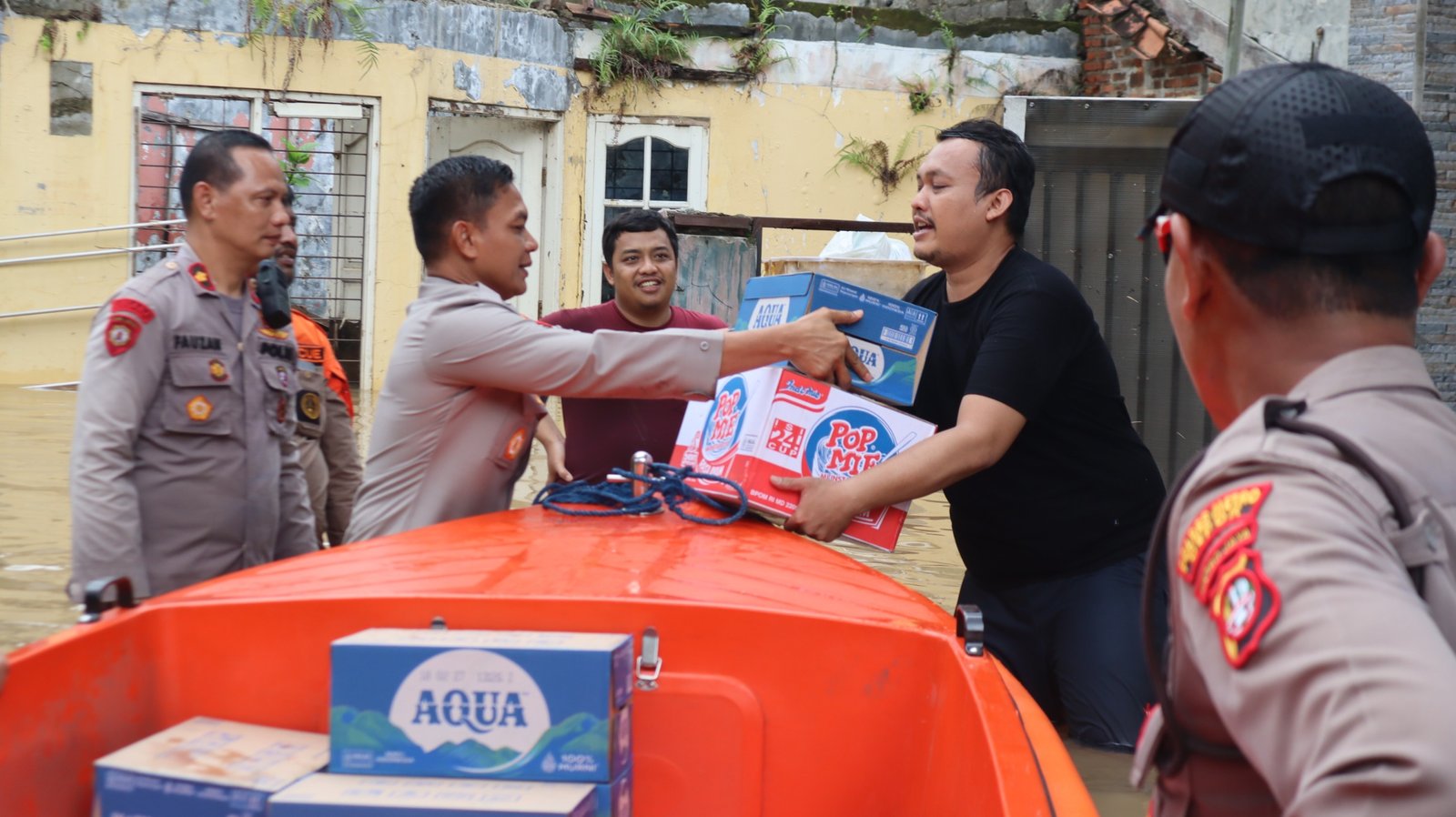Kepolisian Negara Republik Indonesia melalui jajaran Polda Metro Jaya dan Polres setempat turun langsung membantu warga yang terdampak banjir di sejumlah wilayah di Bekasi dan Depok.
