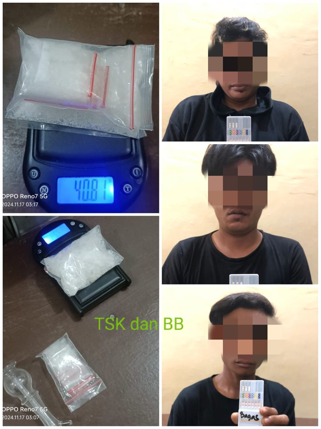 Polsek Kota Baru Polres Melawi Polda Kalbar – Perang terhadap penyalahgunaan narkoba terus digaungkan Polres Melawi dan jajarannya dan berhasil mengamankan tiga orang pelaku berinisial YPP (30), BG (19), dan AA (38) di duga memiliki, menyimpan dan membawa narkotika jenis shabu, berikut barang bukti berupa 70 (tujuh puluh ) plastik transparan berisi kristal putih di duga shabu, 1 (Satu) buah botol, 1 (Satu ) bungkus rokok merk Gudang Jati, 9 (Sembilan) buah pipet, 1 (Satu) unit Sepeda Motor Revo Fit warna hitam, 1 (satu ) unit timbangan merk pocket scale warna hitam, 1 (Satu ) buah bong, 1 (Satu ) buah korek api warna biru, 1 (Satu ) buat korek api warna hijau, 3 (Tiga ) buah pipet yang sudah di modifikasi, 1 (Satu ) buah paket besar berisi kristal putih di duga shabu, 9 (Sembilan) buah paket klip kecil berisi kristal putih di duga shabu, 1 (Satu) buah tas merk Eiger warna hitam, 1 (Satu ) buah Kaca, 1 (Satu) buah kaca dengan ujung berwarna pink, total barang bukti di duga shabu sebanyak 40,81 (Empat puluh koma delapan puluh satu ) gram.