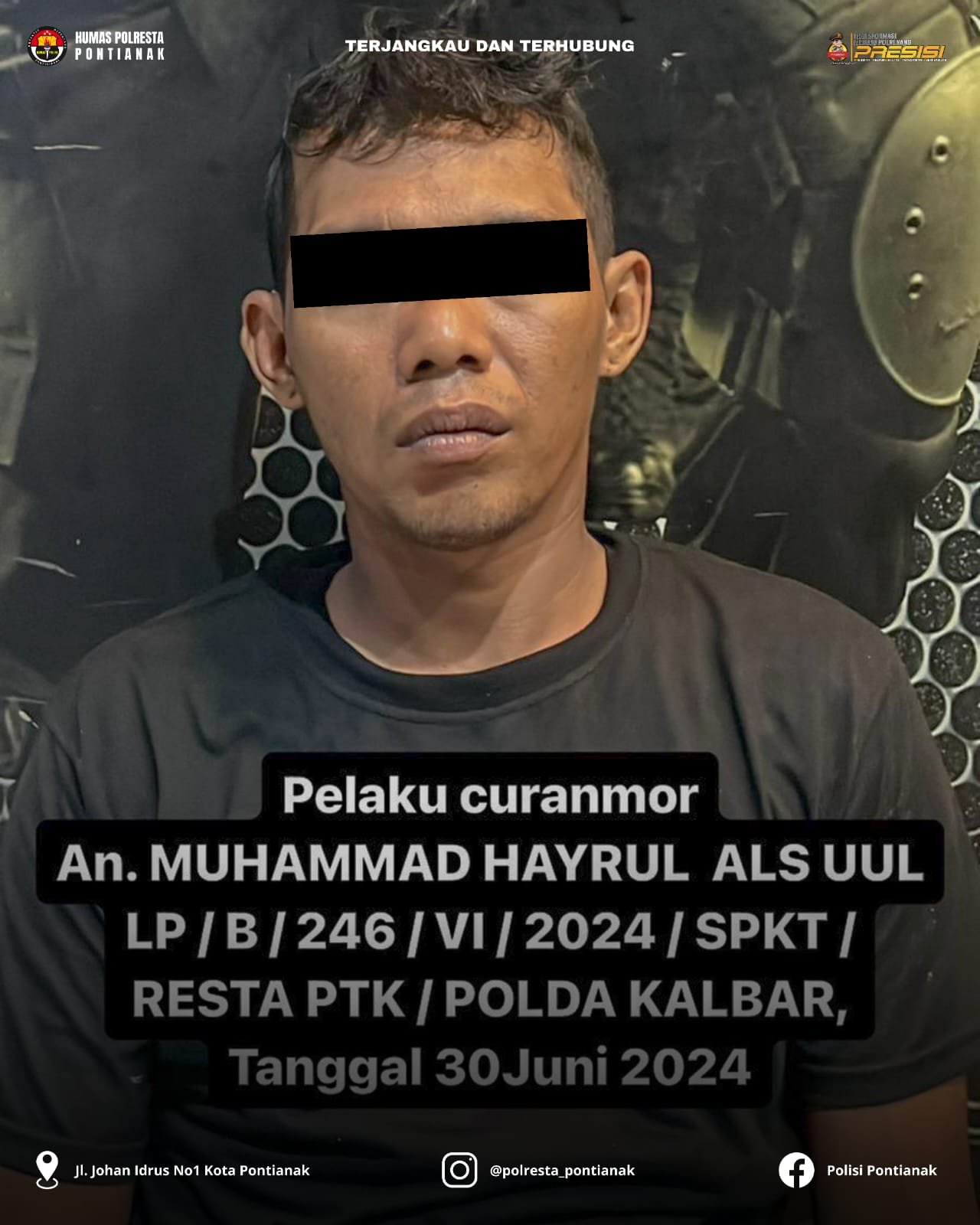 Kapolresta Pontianak, Kombes. Pol. Adhe Hariadi, S. I. K., M. H., melalui Kasat Reskrim Kompol. Antonius Trias Kuncorojati, S. H., S. I. K., menerangkan bahwa penangkapan MH tersebut berdasarkan laporan polisi yang dibuat korban di Polresta Pontianak tertanggal 30 Juni 2024.