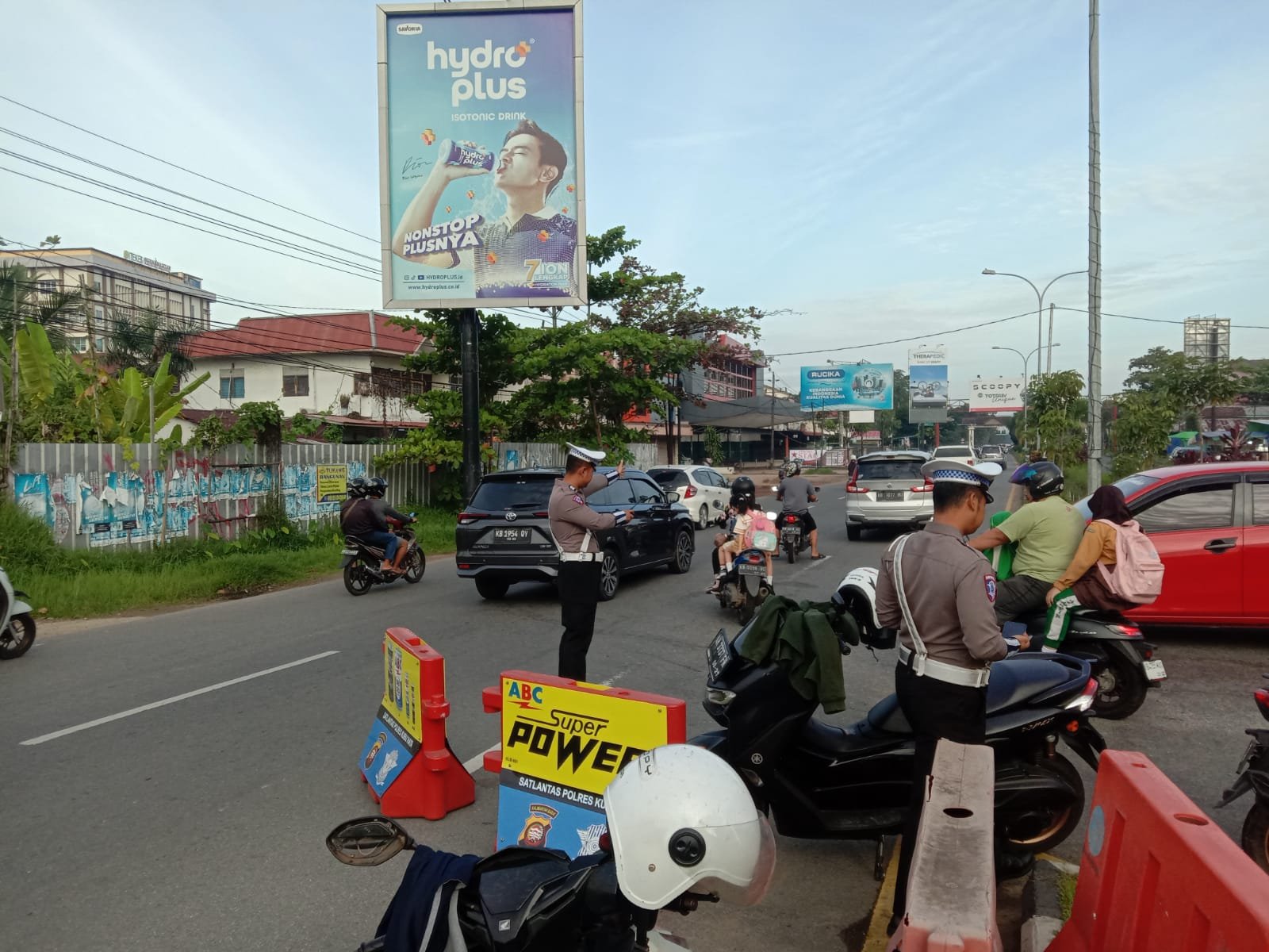 Di lokasi, petugas terlihat sigap mengatur kendaraan yang melintas, membantu pejalan kaki menyeberang, serta mengurai kepadatan di persimpangan yang ramai. Petugas juga mengingatkan pengendara agar tidak melanggar rambu-rambu lalu lintas dan tetap waspada, terutama pada jam-jam sibuk.