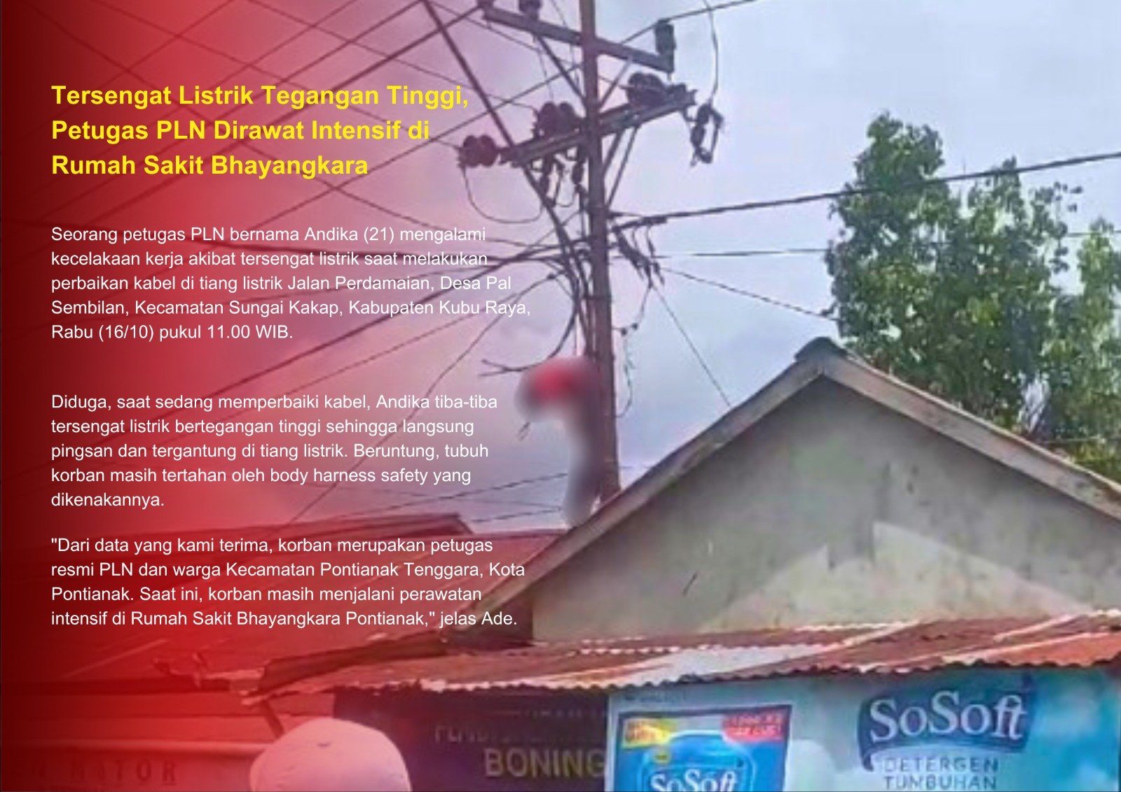 “Dari data yang kami terima, korban merupakan petugas resmi PLN dan warga Kecamatan Pontianak Tenggara, Kota Pontianak. Saat ini, korban masih menjalani perawatan intensif di Rumah Sakit Bhayangkara Pontianak,” jelas Ade.